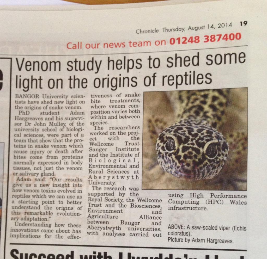 A blog post about some of our venom work, and the debate we had at the International Society on Toxinology World Congress in Oxford in September 2015 (“This house believes that venom originated only once in the course of reptilian evolution”, which we opposed and won). An amicable venomous debate