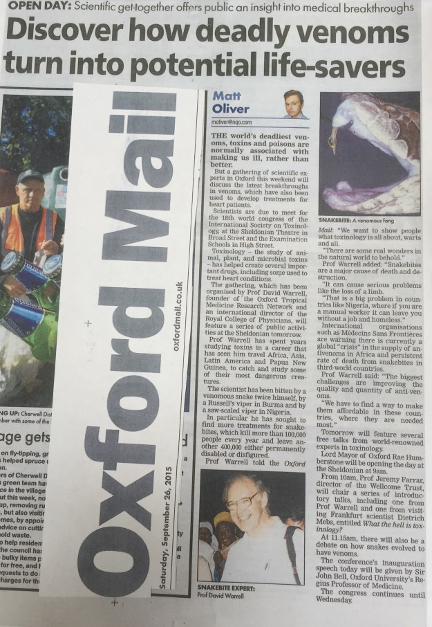 International Society on Toxinology World Congress, Oxford 2015 (I was part of the debate on the Sunday)